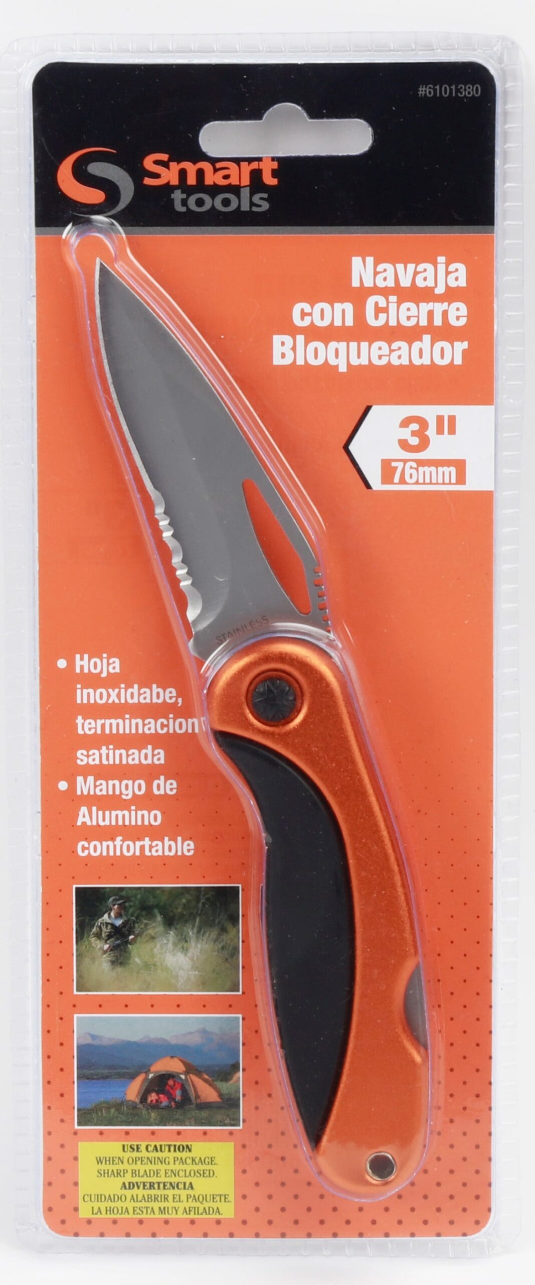 Navaja 3″de bolsillo con cierre bloqueador , hoja de acero inoxidable, mango de aluminio y plastico