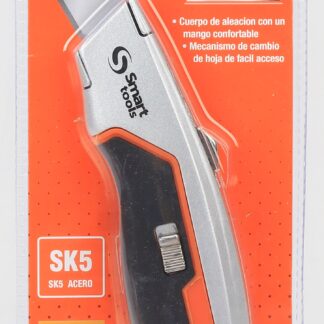 Cuchillo con carga retractil automatica , cuerpo de aluminio con molde de ABS+TPR , hoja retractil cambio rapido, incluye 5 unid de hojas tipo SK5