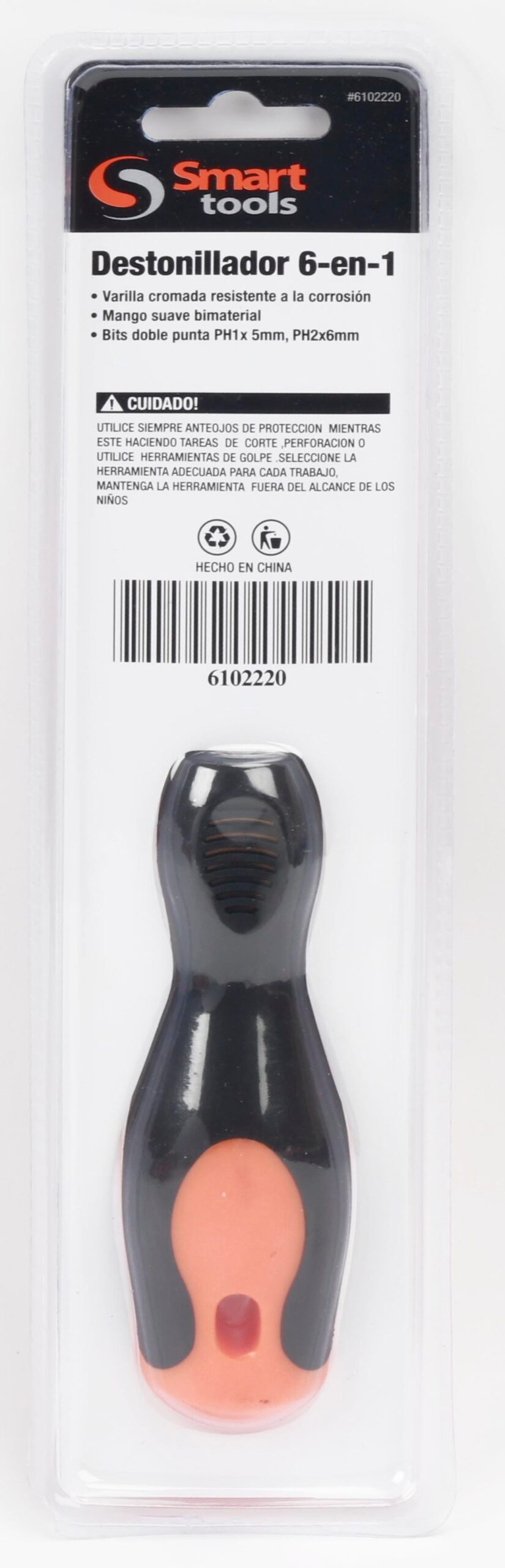 Destornillador 6 en 1, varilla cromada, mango PP+TPR