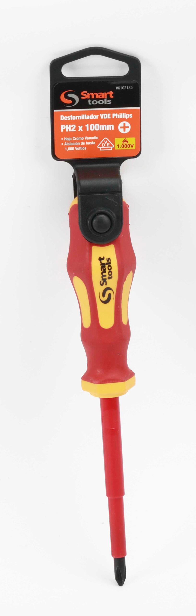 Destornillador phillips ph2x100mm aislacion VDE 1000v, vara de cromo vanadio, punta magnetica negra, aprobado VDE , aislacion de hasta 1,000 volts