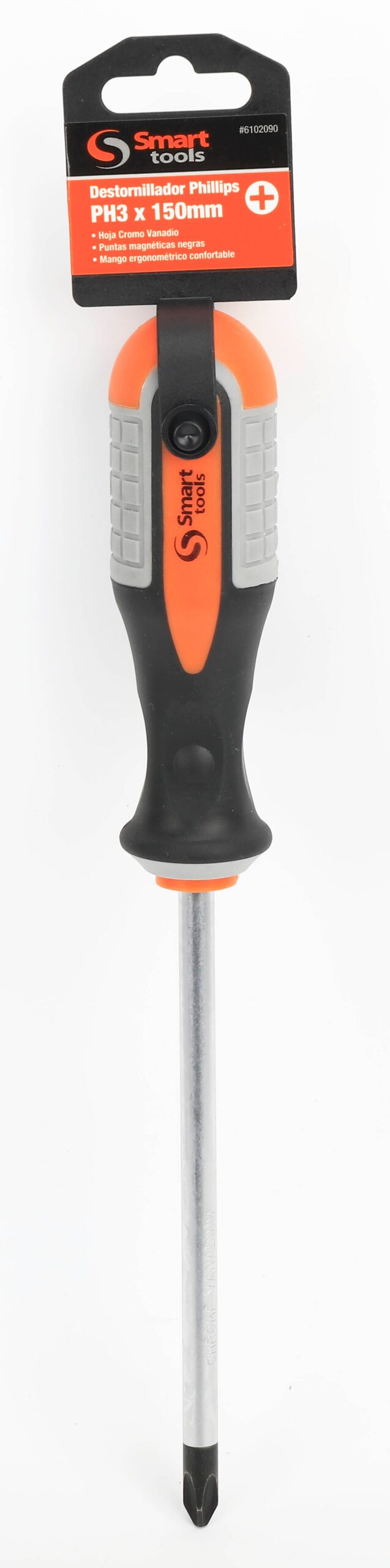 Destornillador phillips ph3x150mm ( PH3 X 6″) mango tricolor, vara de cromo vanadio, punta magnetica, dureza >HRC48, mango ergonomico tricolor PP+TPR