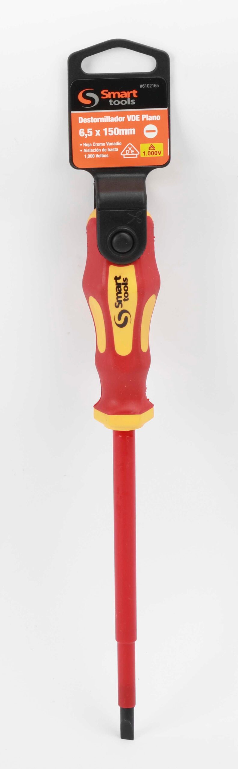Destornillador plano 6.5x150mm aislacion VDE 1000v, vara de cromo vanadio, punta magnetica negra, aprobado VDE , aislacion de hasta 1,000 volts
