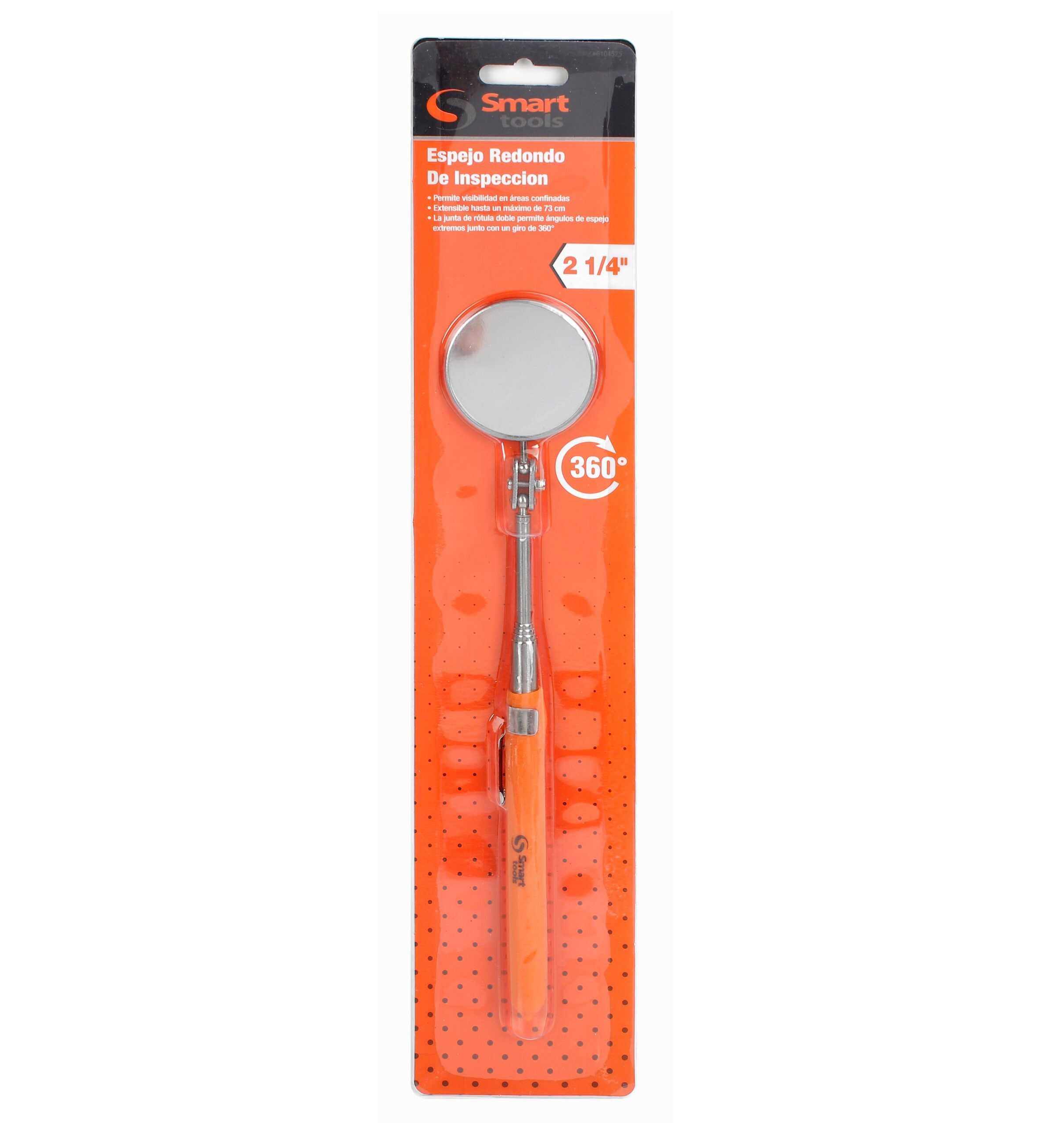 Espejo redondo 2-1/4″ de inspeccion, permite visibilidad en areas confinadas, extensible hasta un maximo de 73 cm, la junta de rotula permite un agulo de visibilidad extremo junto con un giro de 360º