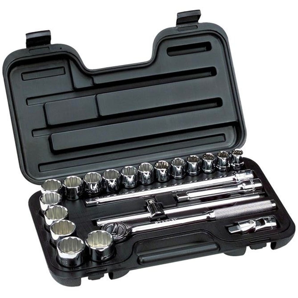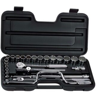 JUEGO DE DADOS []1/2″ DE 23 PIEZAS, CHICHARRA, EXTENSIONES DE 5″-10″, B. CORREDIZO, JUNTA, 17 DADOS DE 12 A 30 MM. Y CAJA METALICA