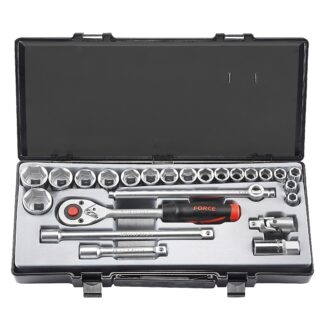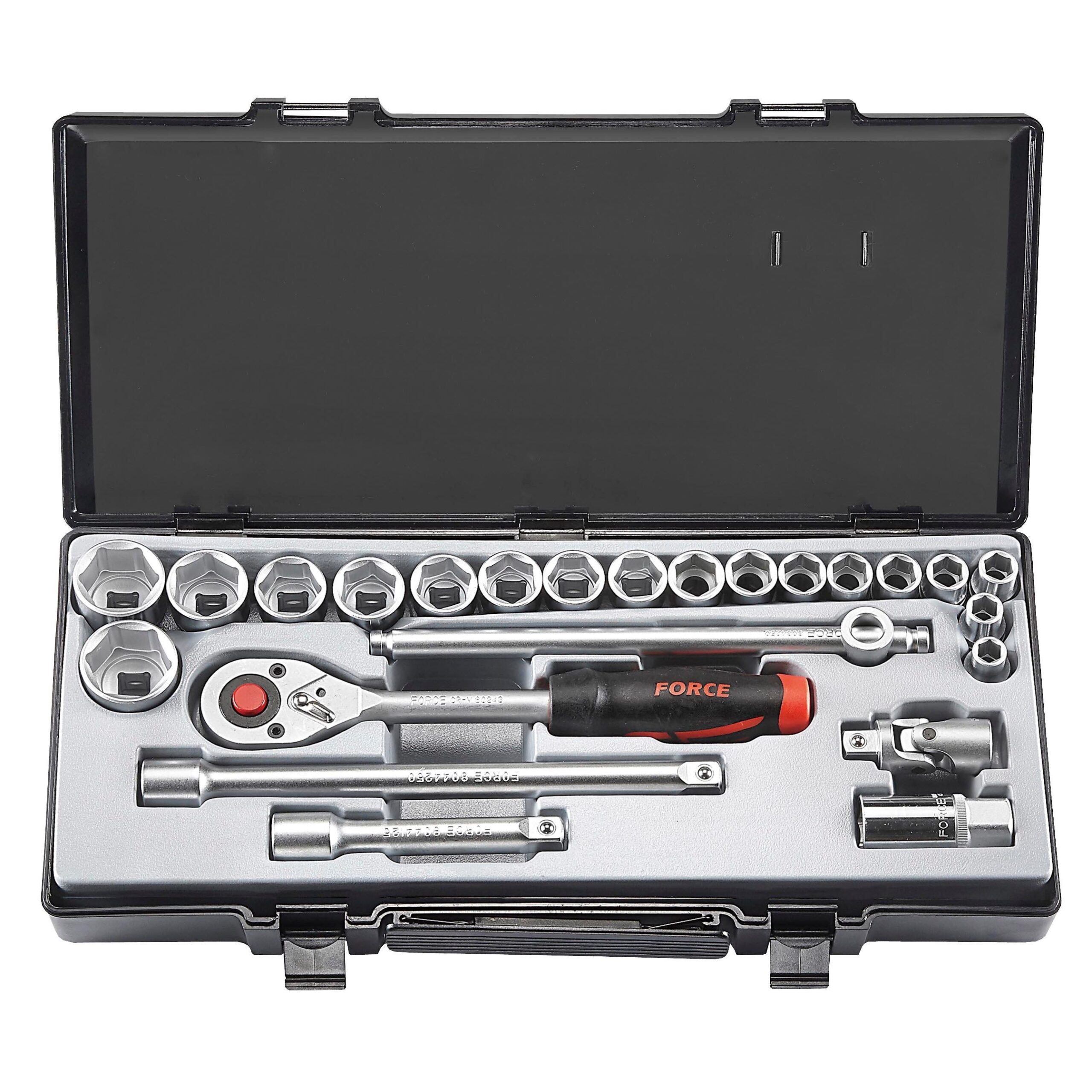 JUEGO DADOS []1/2″ 18 DADOS 5/16″-1.1/4″ CHICHARRA, DADO BUJIAS,2 EXTENSIONES JUNTA CARDANICA Y BARROTE CORREDIZO HEXAGONAL, CANTO VIVO