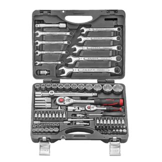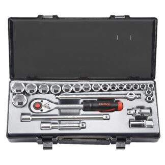 JUEGO DADOS []1/2″ 18 DADOS 5/16″-1.1/4″ CHICHARRA, DADO BUJIAS,2 EXTENSIONES JUNTA CARDANICA Y BARROTE CORREDIZO HEXAGONAL, CANTO REDONDO