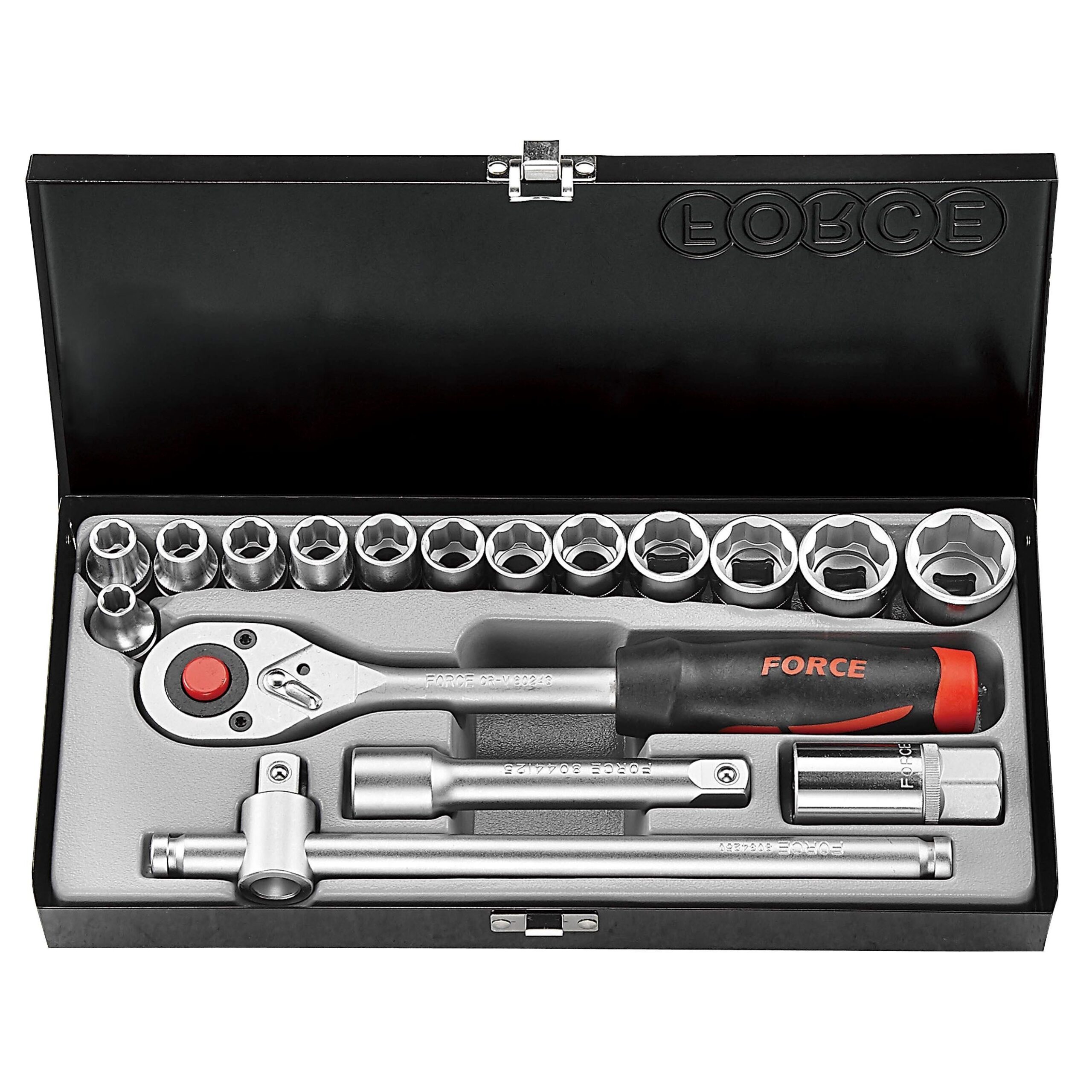 JUEGO DADOS []1/2″, HEX. C/R, 13 DADOS DE 5/16″ A 1″, CHICHARRA, DADO DE BUJIAS DE 13/16″, B.CORREDIZO Y EXTENSION DE 5″