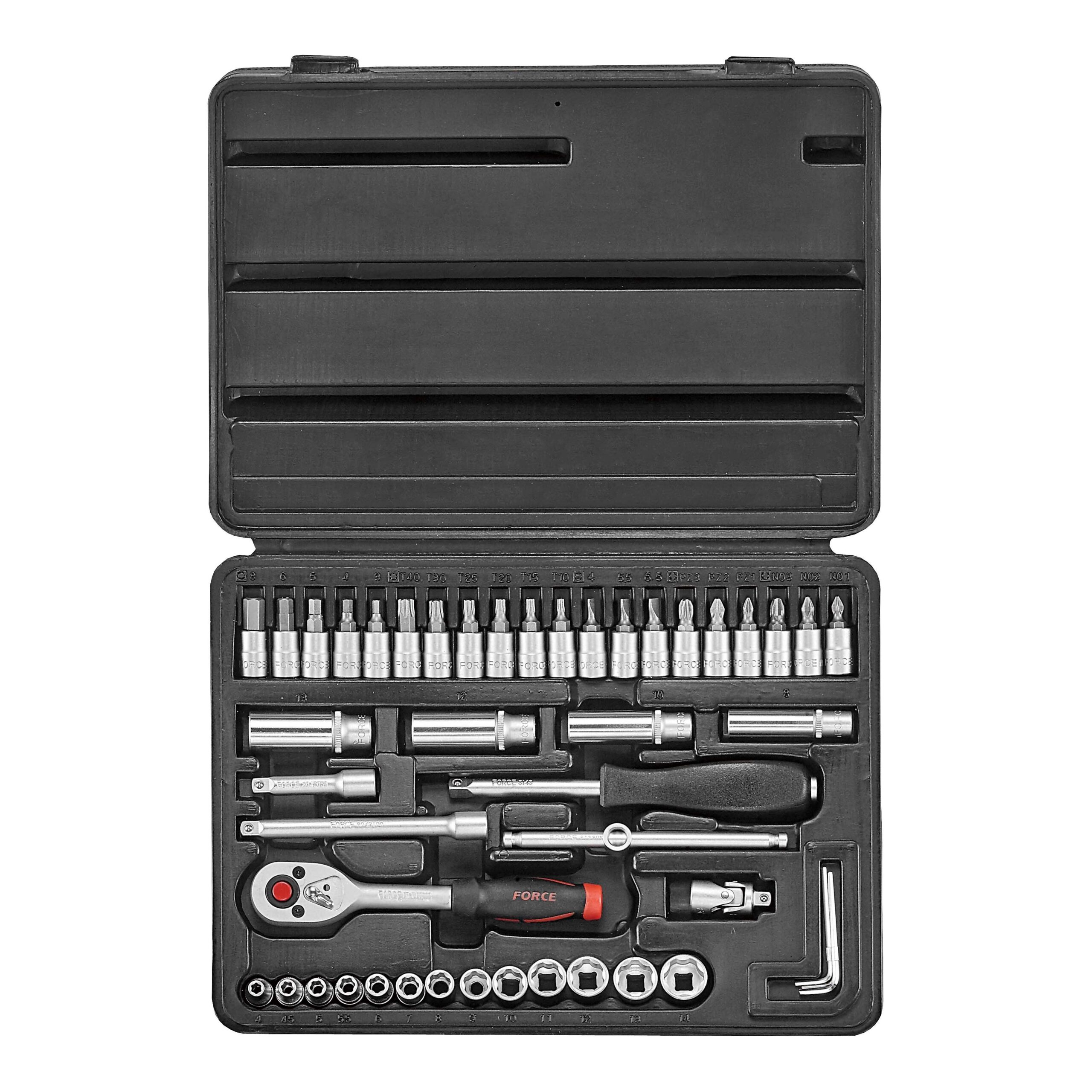 JUEGO DADOS []1/4″ 13 DADOS, 4 A 14 MM Y 4 DADOS LARGOS DE 8 A 13 MM, 20 PUNTAS TORX, ALLEN Y DESTORNILLADOR,CHICHARRA, 2 EXTENSIONES, BARR. CORREDIZO, CARDAN MANGO DESTORNILLADOR Y 3 LLAVES ALLEN