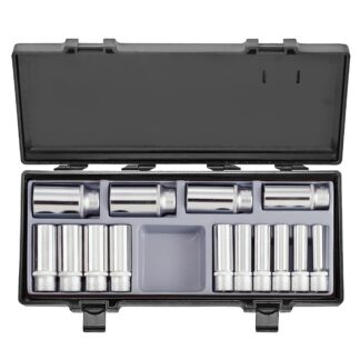JUEGO DADOS []3/4″ 10 DADOS, 22 A 50 MM. CHICHARRA, BARROTE CORREDIZO Y 2 EXTENSIONES DE 4″ Y 8″, CAJA METAL.
