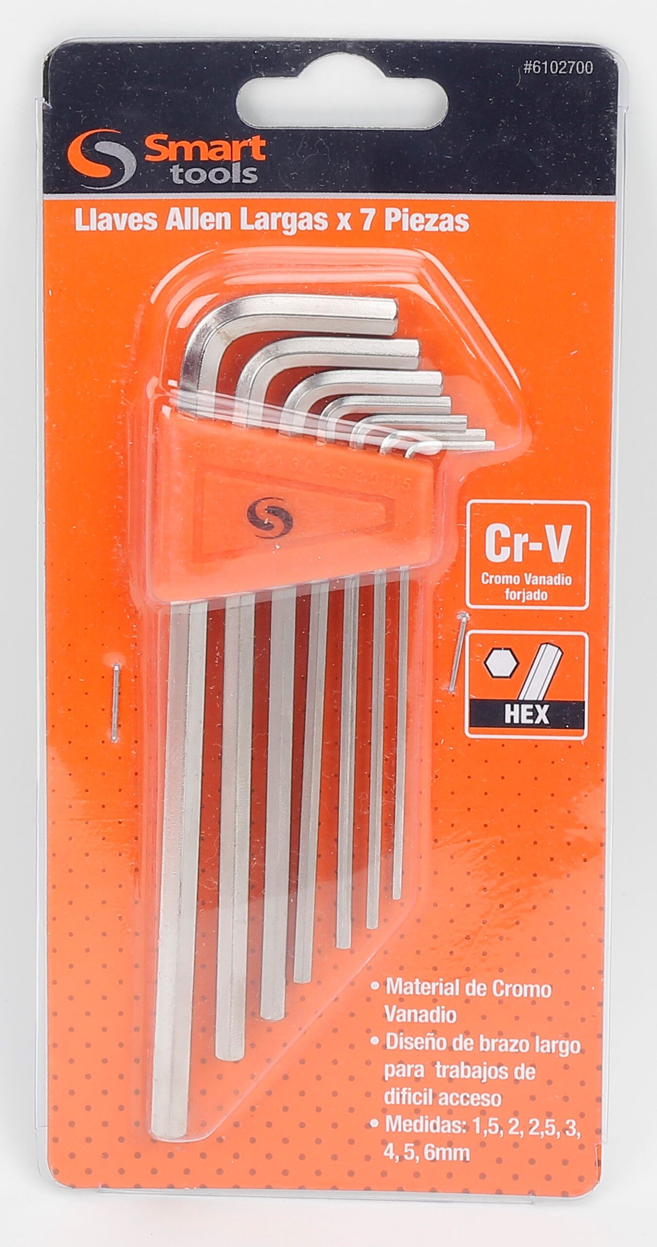Llaves allen largas x 7 piezas , vara de CRV , incluye: 1.5,2,2.5,3,4,5,6mm, con porta llaves plastico