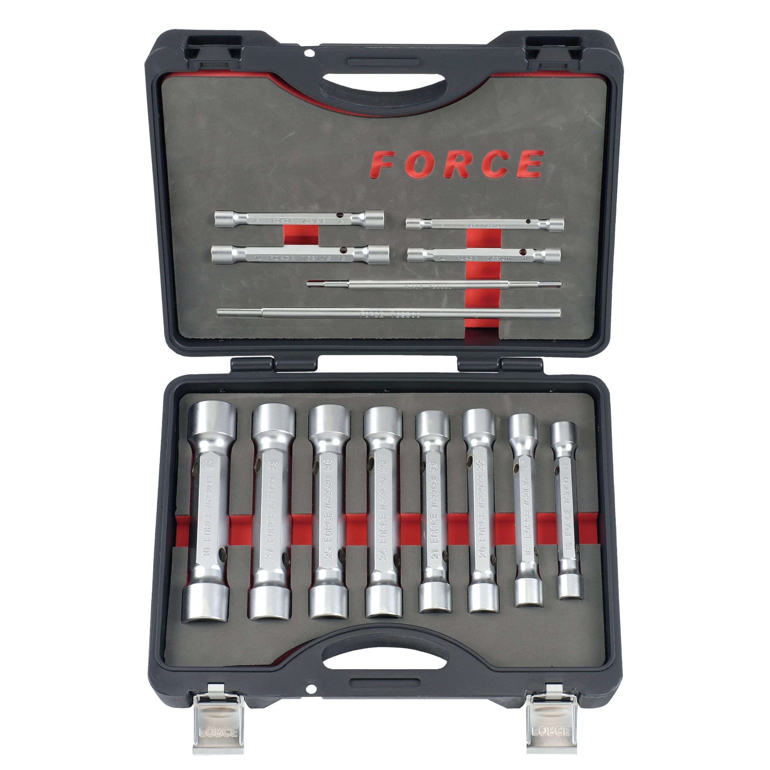 JGO. LLAVES TUBO DE 8 A 32 MM., 14 PZS. 12 LLAVES Y 2 BARROTES DE 220 – 300 MM.
