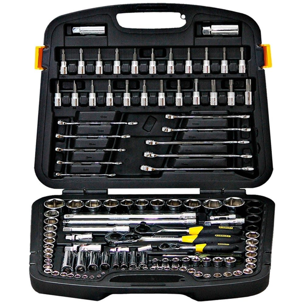 JGO. MECANICO 120 PZS. []1/4″-3/8″-1/2″ INC. LLAVES, DADOS, CHICHARAS, JUNTAS CARDANICAS, EXTENSIONES, DADO ATORNILL.